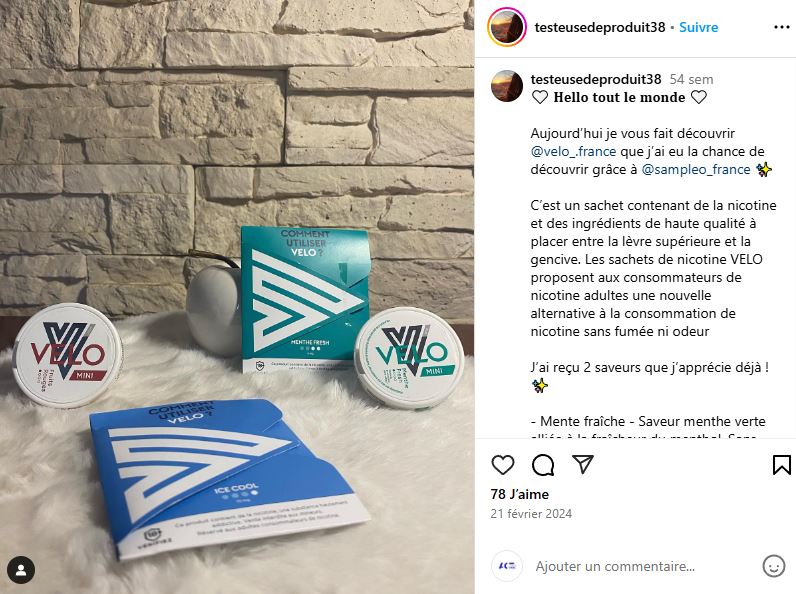 Les industriels réalisent également des campagnes d’échantillonnage, en envoyant des produits test gratuits aux personnes influentes ciblées. Parmi les 229 influenceurs engagés, une majorité sont des nano et micro-influenceurs, avec des communautés allant de 1 000 à 20 000 abonnés. Leur proximité avec leurs followers permet à Vuse, Blu et VELO de promouvoir leurs produits de manière subtile et indirecte. Ces influenceurs, issus des univers lifestyle, de tests de produits et de beauté, sont choisis pour leur accessibilité et leur authenticité, renforçant ainsi la confiance des abonnés et l’attractivité des produits. Même certains influenceurs non-fumeurs ont été sollicités pour tester et promouvoir des produits, ce qui révèle l’objectif réel derrière ces campagnes : recruter de nouveaux consommateurs pour assurer la pérennité des profits de l’industrie.
