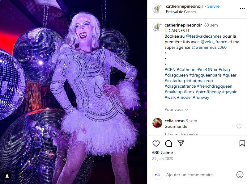 Les industriels cherchent également à se relier à des figures publiques ayant participé à des émissions télé. Un exemple frappant est la collaboration de VELO avec la Drag Queen @Catherinepinotnoir lors du Festival de Cannes en juin 2023, ainsi que lors de la clôture hivernale de la Folie Douce des Arcs. Ces événements ont offert à la marque l’opportunité de promouvoir ses produits dans un cadre festif, tout en ciblant un public jeune et connecté grâce à une figure influente.